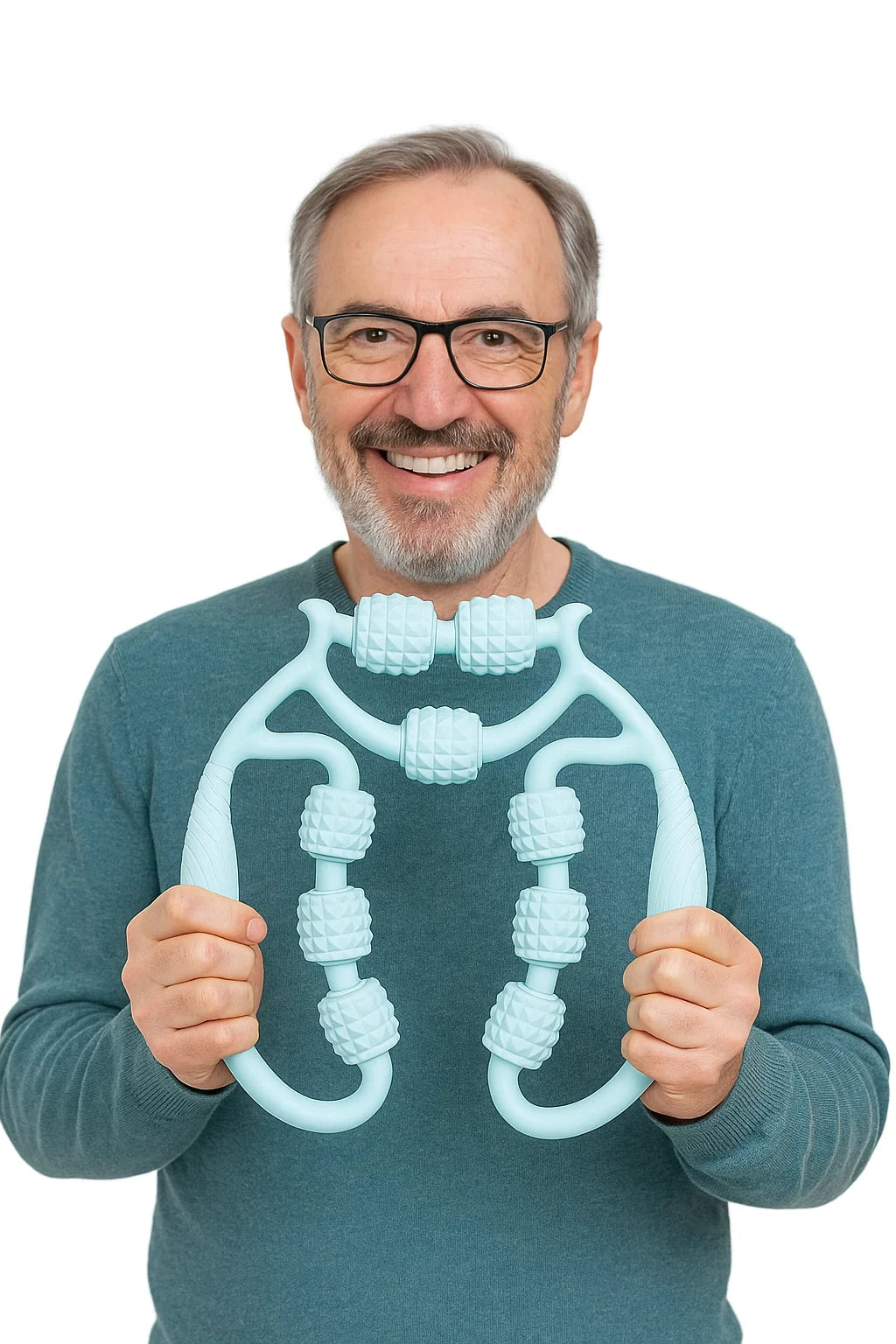 Mit 9 rotierenden Massage-Rollen fördert das Gerät gezielt die Durchblutung, lindert Schmerzen und unterstützt die Regeneration von Muskeln und Gelenken. Die regelmäßige Anwendung kann helfen, Steifheit zu reduzieren, die Beweglichkeit zu verbessern und das Wohlbefinden im Alltag spürbar zu steigern – ganz ohne Medikamente.